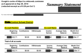 The cached Google search result referenced and linked to above (the screen shot of an account statement with details appearing to contain sensitive client information but redacted in the version we have posted) has been removed from Google search results. We do not observe any Google search results containing potentially sensitive information that may have been indexed off this MBIA server. None of the other major search engines appears to have any such sensitive information indexed off the mbiaweb.com or cc.cutwater.com.